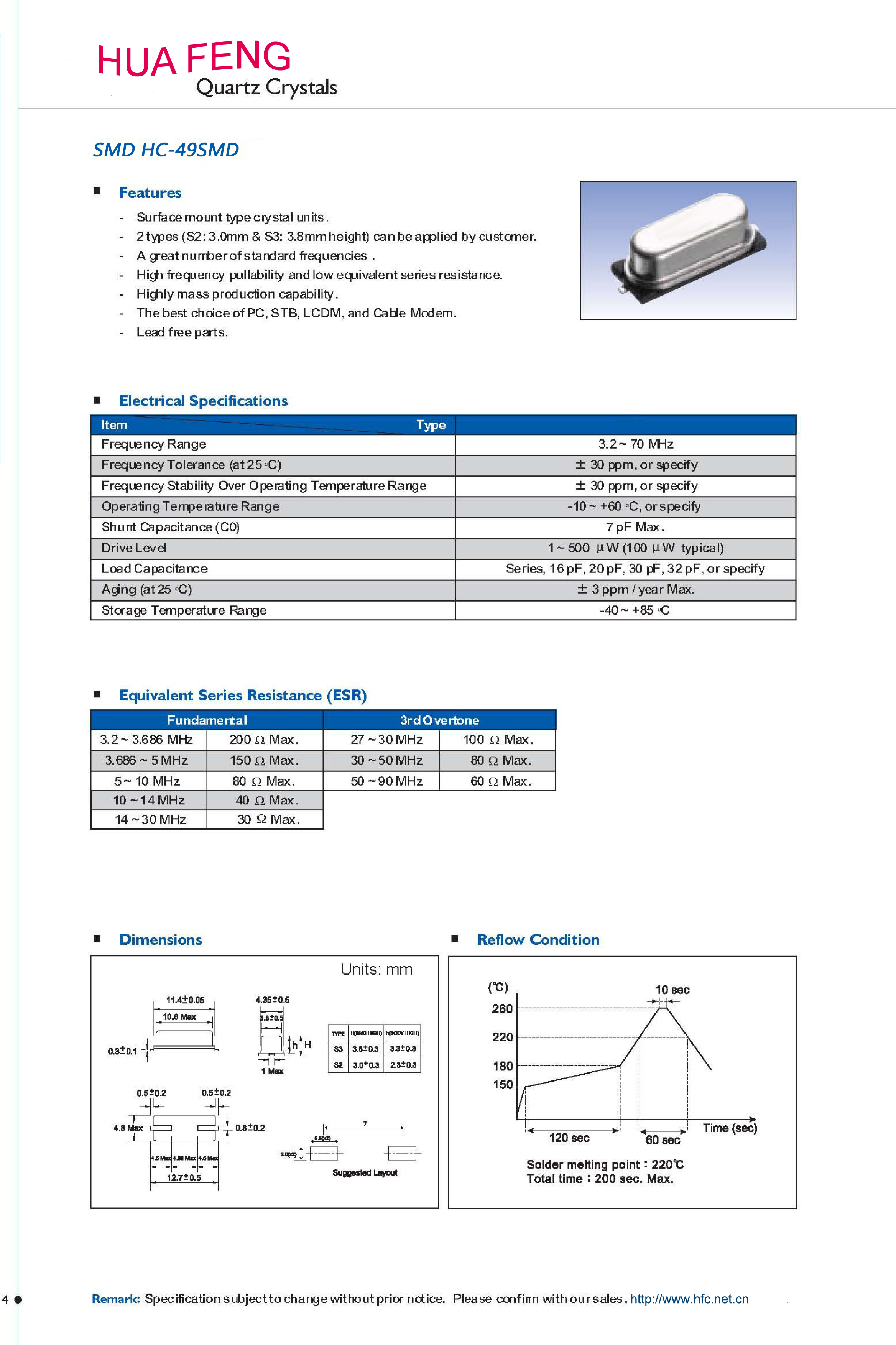 石英晶體諧振器  49u dip   Resistance welded type crystal units   13.2*10.*3.8  1.700MHZ~125.000MHZ yes